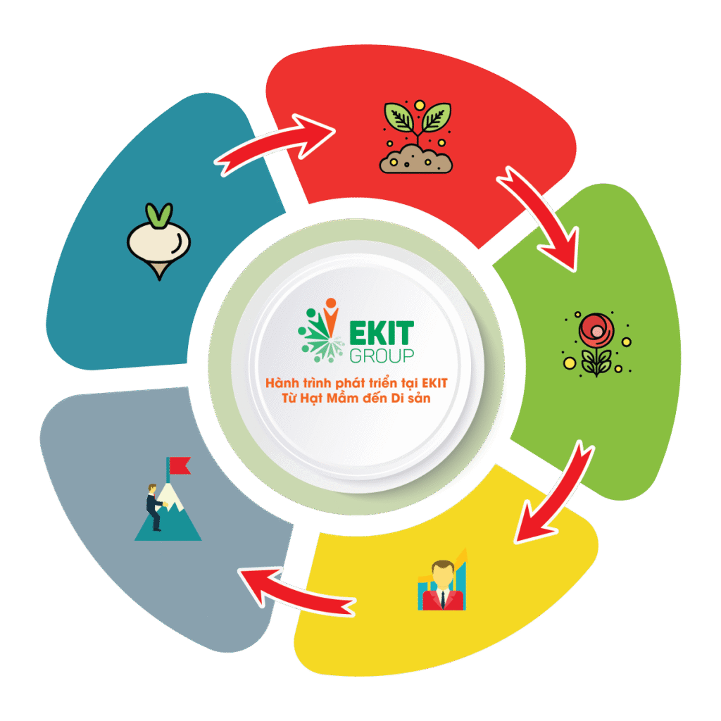 Tại EKIT, chúng tôi hình dung sự trưởng thành của mỗi cá nhân như một hành trình của hạt mầm, từng bước vươn lên và tạo dựng giá trị bền vững.